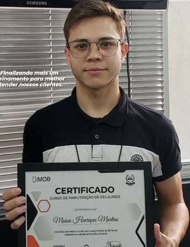 Técnico certificado em mais de duas instituições, contamos com reparos de qualidade e garantia para diversos modelos e marcas de celulares disponíveis.